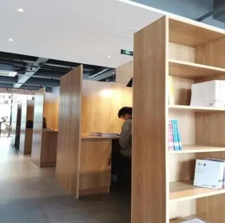 书吧对书架进行多功能化利用,在传统的“放置书籍”之外,赋予其空间隔断、隔音降噪的职能,从而打造安静、私密的学习空间。
