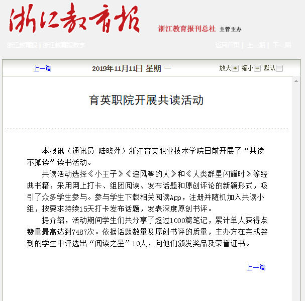《浙江教育报》先后两次对书吧开展的活动作了报道。