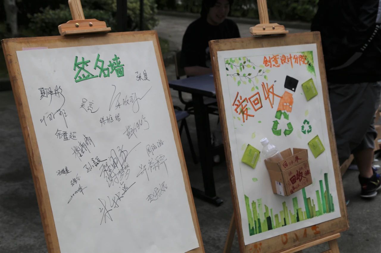 参与此次活动的同学,也都在签名墙上留下了自己的姓名,大家都希望能将自己一点一滴的付出汇聚在一起,通过此次的环保回收活动,共建美好校园,绿色地球。