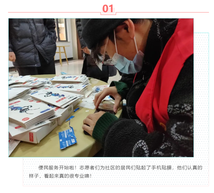 社区志愿者用自己的热情感染了整个社区。他们既便利了社区的居民,也丰富了自己的生活。本次便民活动让志愿者们感受到了生活的辛苦,也让志愿者得到了锻练。