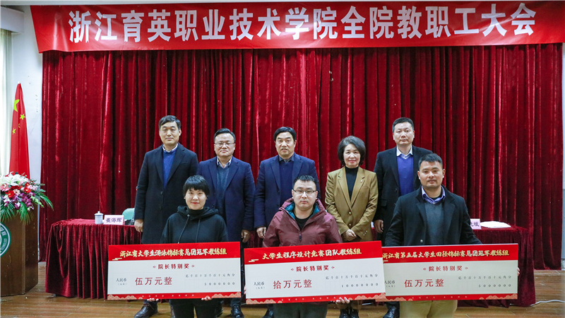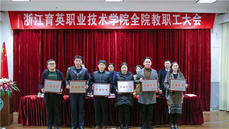 会议表彰了2020年先进集体和个人。黄爱平宣读在学院工作五年及以上教职员工表彰决定,分别颁发纪念盘和纪念章。王敏宣读2020年度“平安分院”表彰决定,学院6个分院均被评为平安分院;徐晓斌宣读院长特别奖:大学生程序设计竞赛团队院长特别奖、浙江省第五届大学生田径锦标赛总团冠军教练组院长特别奖、浙江省大学生游泳锦标赛总团冠军教练组院长特别奖。