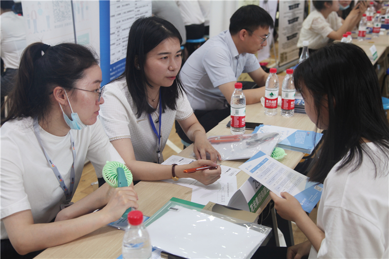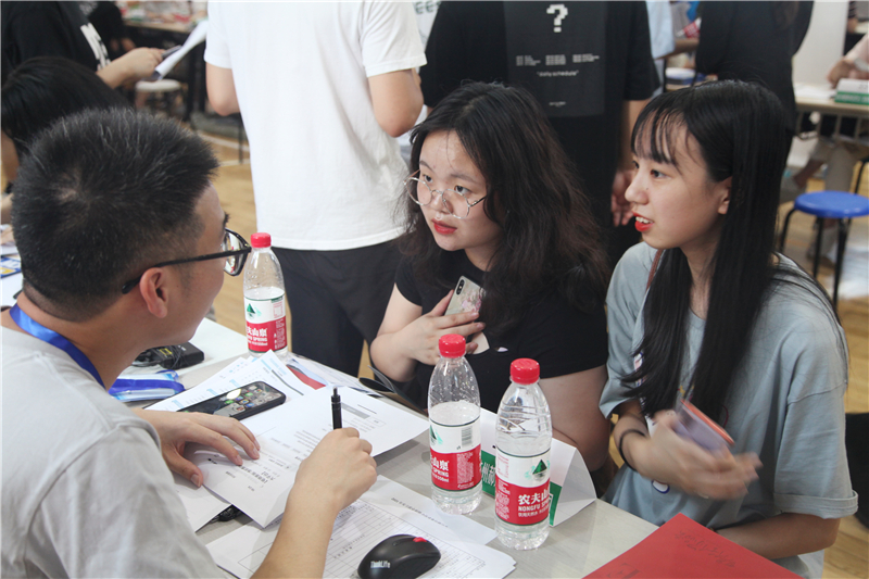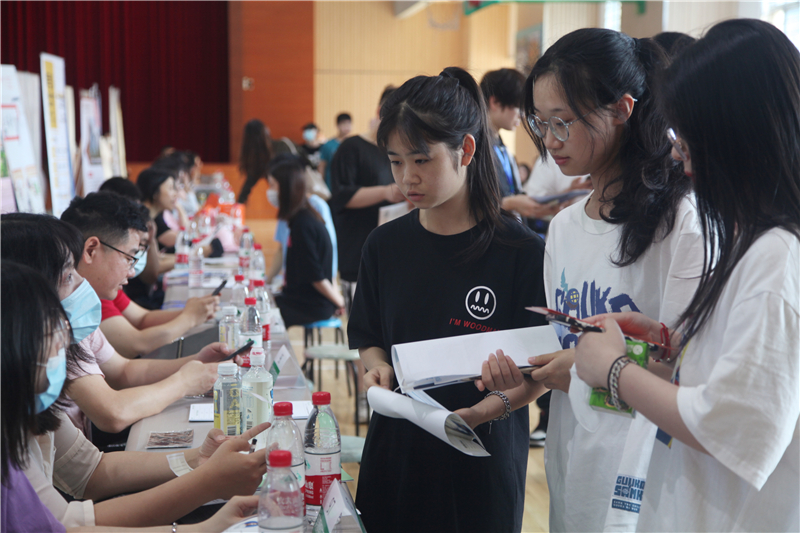 招聘会现场火热的气氛还吸引了大一学生前来观摩,提前了解招聘流程,做好职业生涯规划。