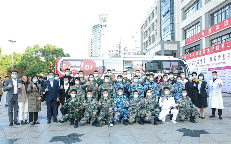 浙江省血液中心副主任潘凌凌、陈旭东,献血服务一科主任赵小雅,学院党委书记、副院长谢鑫等领导一同慰问参与无偿献血的师生,为育英师生的大爱精神点赞。