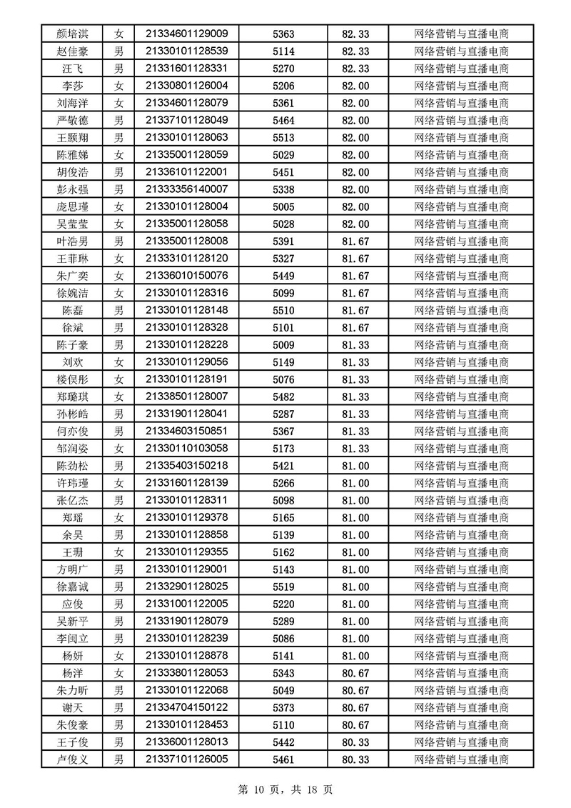 2021年高职扩招分专业拟录取考生名单