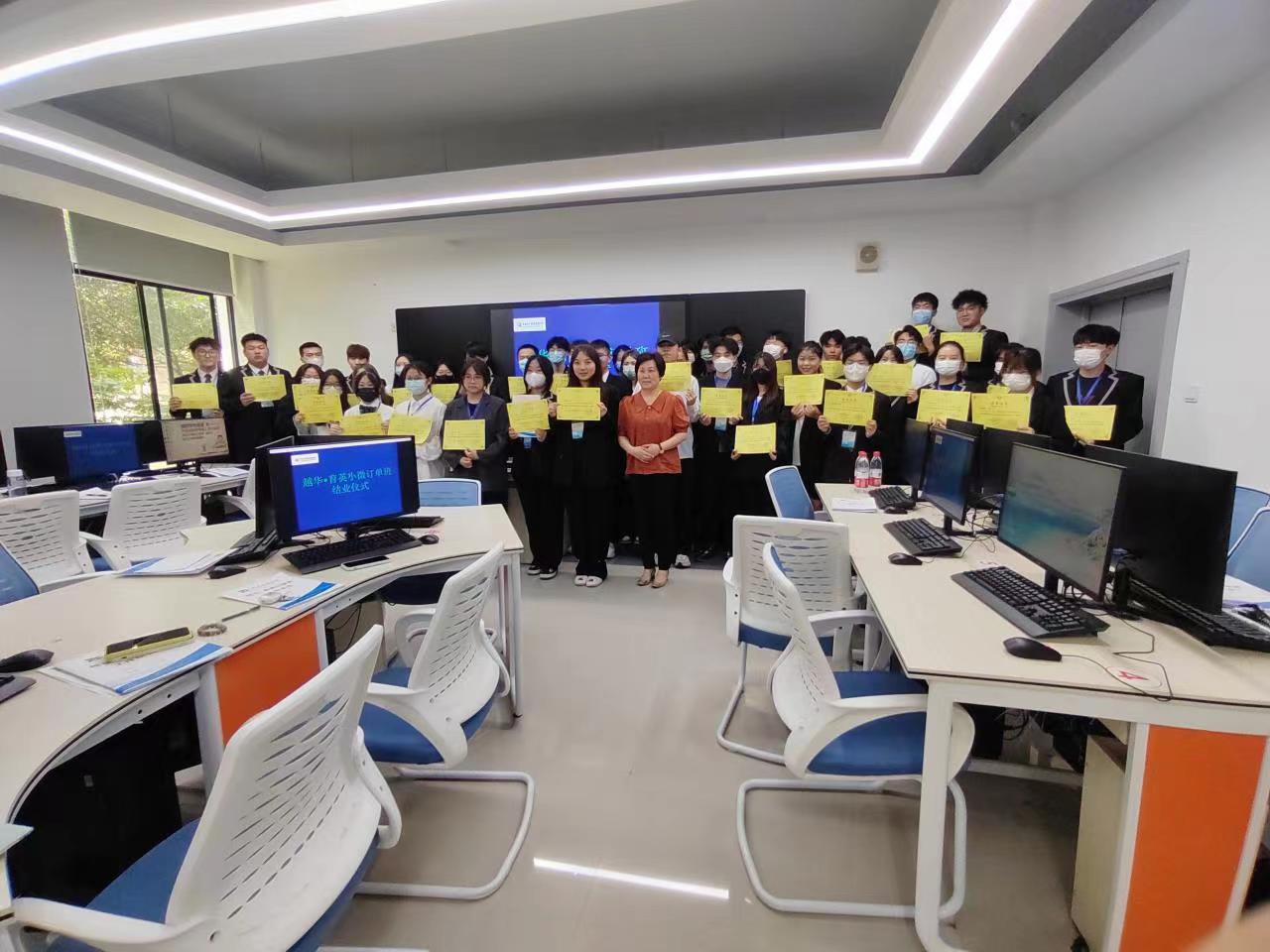 2022年6月14号下午在3120实训室进行了越华育英小微订单班第八期结业仪式。越华公司杭州分公司总经理黄海华以及人事处经理张艺铮、国商专业傅祝屏、杨芬及魏巧米三位老师和订单班全体学员参与了本次结业仪式。