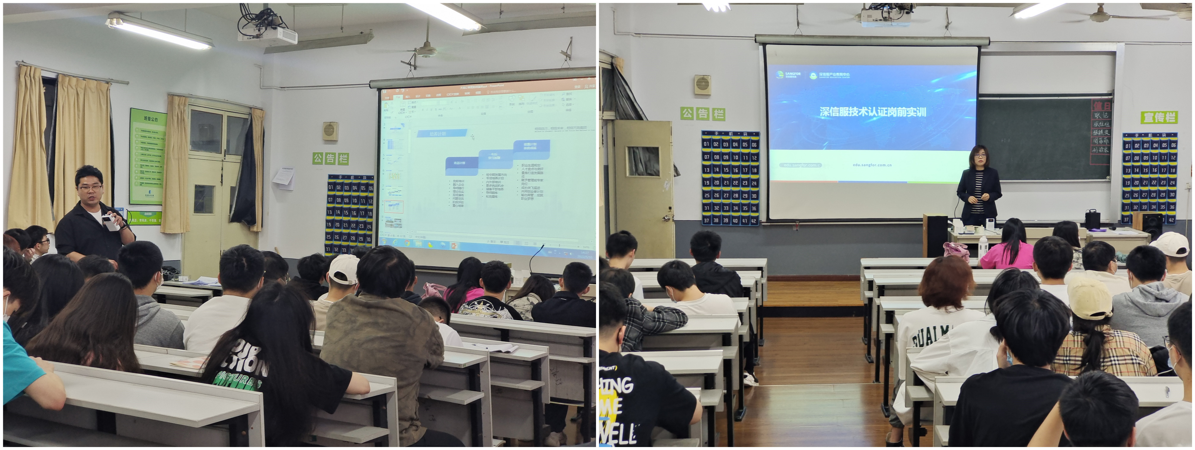 下午3点,第二家合作企业深信服公司来到学校。曹林总监及其4名同事一行来到1604,进行了特训营项目的宣讲。