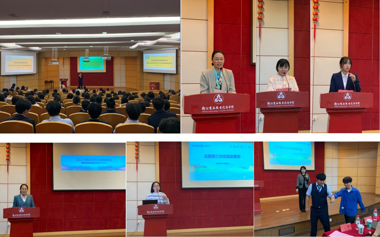 为了保证本次大型实训活动的顺利进行,智慧旅游学院于2022年11月11日组织召开动员大会暨岗前培训会。大会主办方代表、承办方代表、学院领导、会展专业负责人、校外礼仪专家在会上进行了动员和培训。