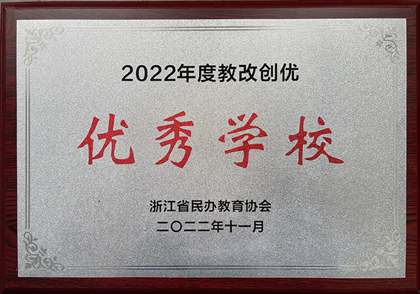 2022年11月 学院被浙江省民办教育协会授予”教改创优优秀学校”