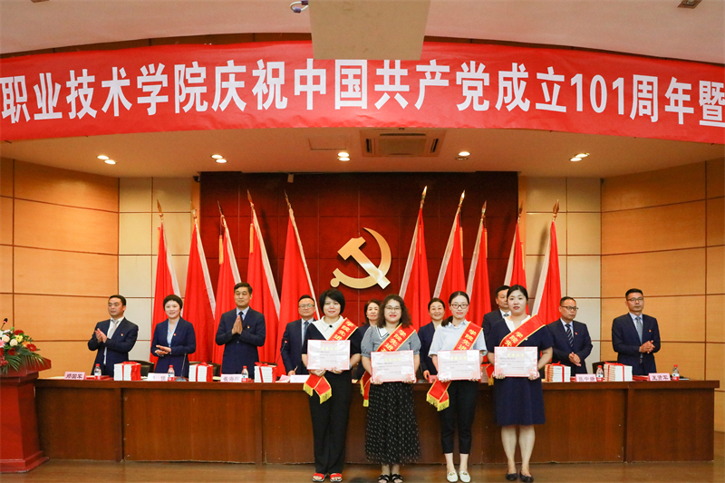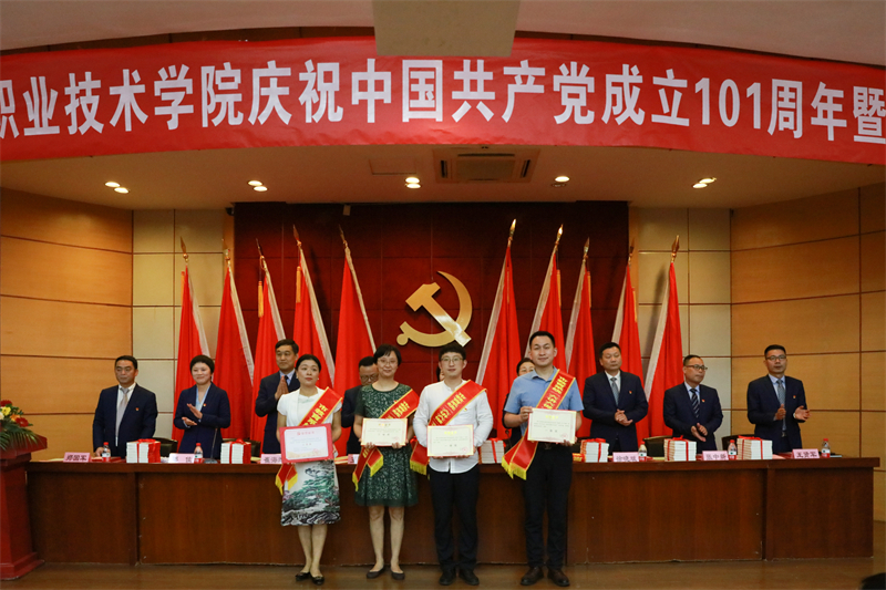 表彰2021-2022学年学院先进基层党组织、优秀党员、优秀党务工作者和先进党章学习小组  数字商贸分院党总支书记姜蕾作全省党建工作标杆院系汇报展示;民航交通分院教工支部书记高嘉佳作样板支部汇报展示;信息技术分院教工支部书记何燕飞,智慧旅游分院葛秀华老师分别作优秀党员汇报展示。