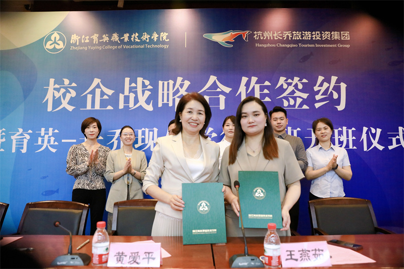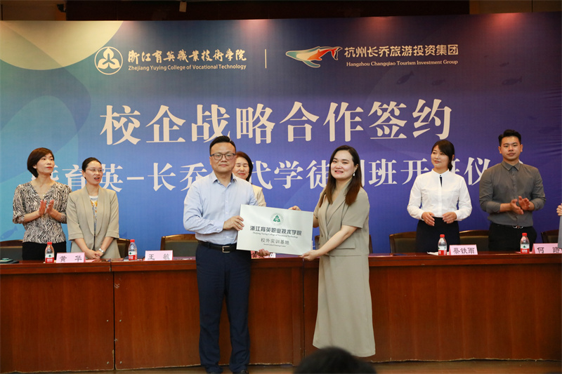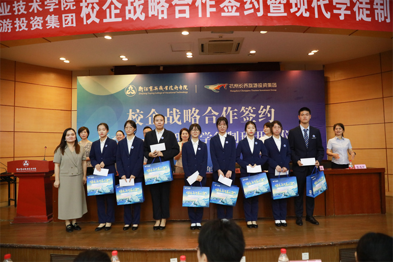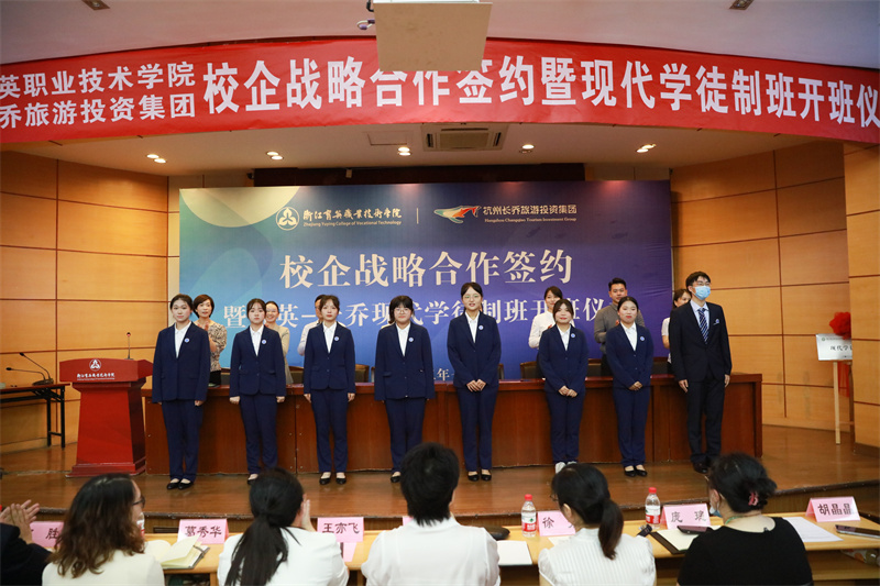 7月1日,学院与杭州长乔旅游投资集团有限公司的战略合作签约暨现代学徒制班开班仪式在三号报告厅举行。