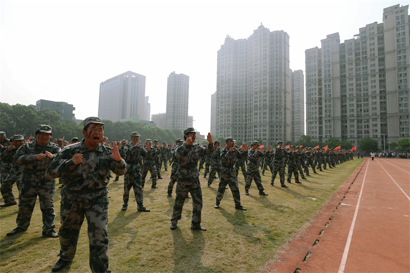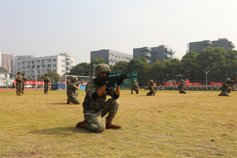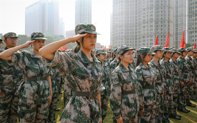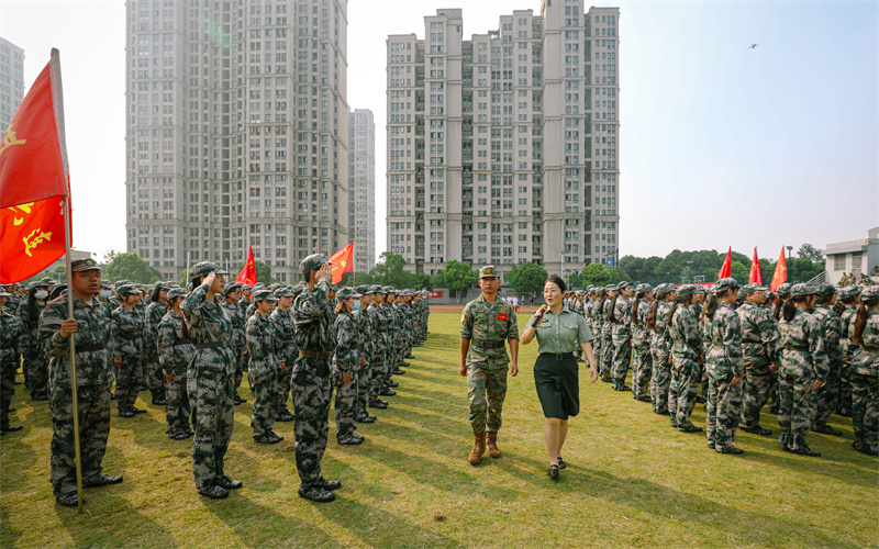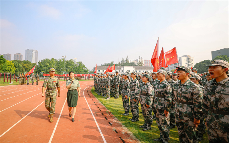 王敏作军训总结。他说,军训是同学们进入大学的第一堂课。在这10多天军训中,同学们在具有优良作风和传统的73021部队教官指导下,认真学习,严格操练,圆满完成军训各项任务。通过军训,同学们进一步巩固和提升了国防意识,增强了国防观念和国防素质,强健了体魄和精神,磨砺了意志品质,增强了团队意识和集体主义精神。通过入学教育,同学们更加了解学校的发展历史、专业人才培养模式、图书资源和学习条件,以及党团组织、大学生社团等方面情况,为后期的专业学习打下良好基础。在接下来的学习生活中,希望同学们一是要牢记军人精神品质,不断提高自身综合素质。要以军训为基础,学习军人精神品质,锻炼和提升各方面能力和素养。二是要学习军人精神,树立青春报国志向。作为新时代青年,生逢盛世,必须树立报国志向,青春心向党,奋斗正当时。三是要把军训教育成果转化为个人实际行动。希望大家坚定信念,把个人的理想和梦想融入全面建设社会主义现代化强国实践中,努力为中华民族复兴铺路架桥,为伟大祖国建设添砖加瓦!