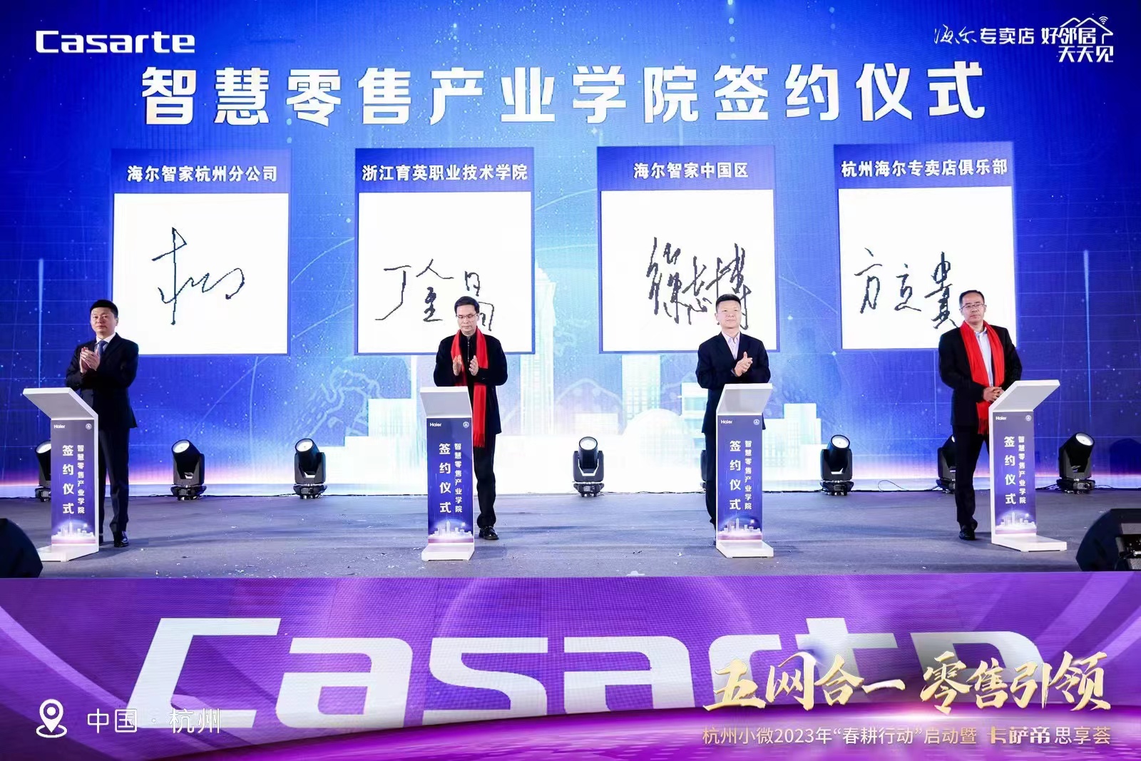 海尔智家智慧零售产业学院签约成立,标志着我校产教融合、协同育人、开放合作办学工作取得新突破,数字商贸专业群“专业+领军企业”校企合作模式又出新成果。