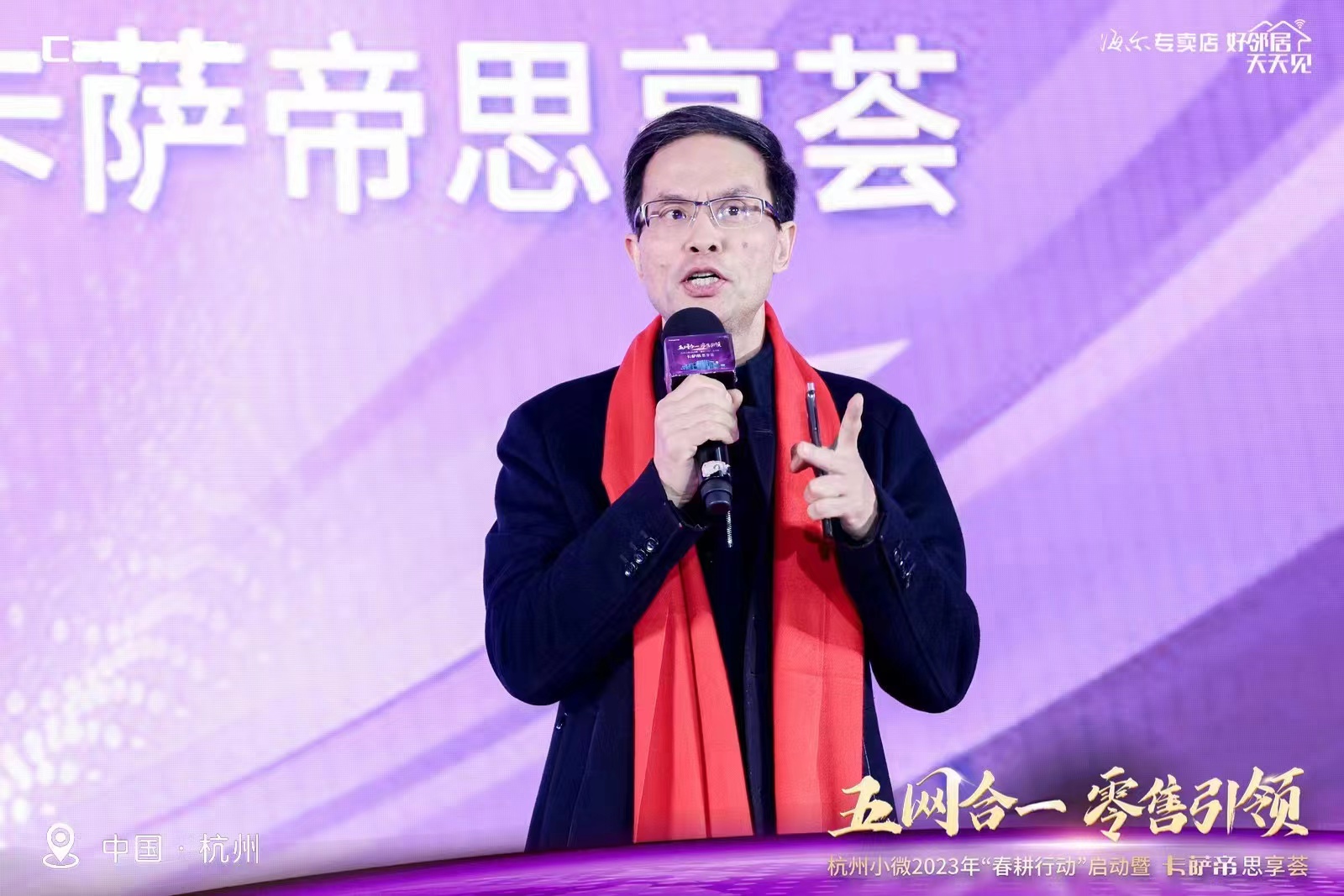 徐志博对育英学院与海尔杭州分公司共建成立智慧零售产业学院表示祝贺。他指出,零售正面临着一场前所未有的大变革,必须要以数字赋能新零售,对内要进行业务模式重构,对外要加强与高校合作,“共建库、储人才”。产业学院的成立将校企合作推向一个新台阶,希望深化双方合作,进一步培养企业需要的应用型、复合型新零售人才。从人才定制、课程开发、技术研发、人员培训等方面着手,共同打造海尔杭州乃至整个中国区校企合作的典型案例与标准化模式样板。