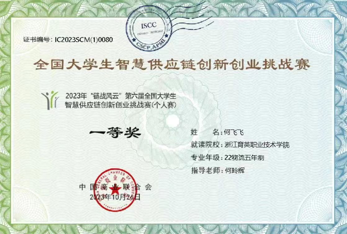 物流管理专业师生经过近一个月的训练,得到了优异的成果,何飞飞、汪姜彦获一等奖;钱志勇、沈晓艳、范逸晨、蒋雨洁二等奖;王洁、邓博文、郑世博、杨宇航、许文心三等奖。 指导老师为何玲辉、王文青、石纳芳、姜小明、陈刚、许佳燕、孔令峰。