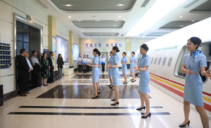 省外办第五党支部和省能源集团国际业务部党支部的与会人员还参观了育英民航空乘实训室、直升机驾驶实训室等,观看了民航交通学院亚运礼仪志愿者表演的亚运主题曲和礼仪展示等,并与亚运志愿者亲切交流,详细了解培训及参加亚运测试赛等有关情况。