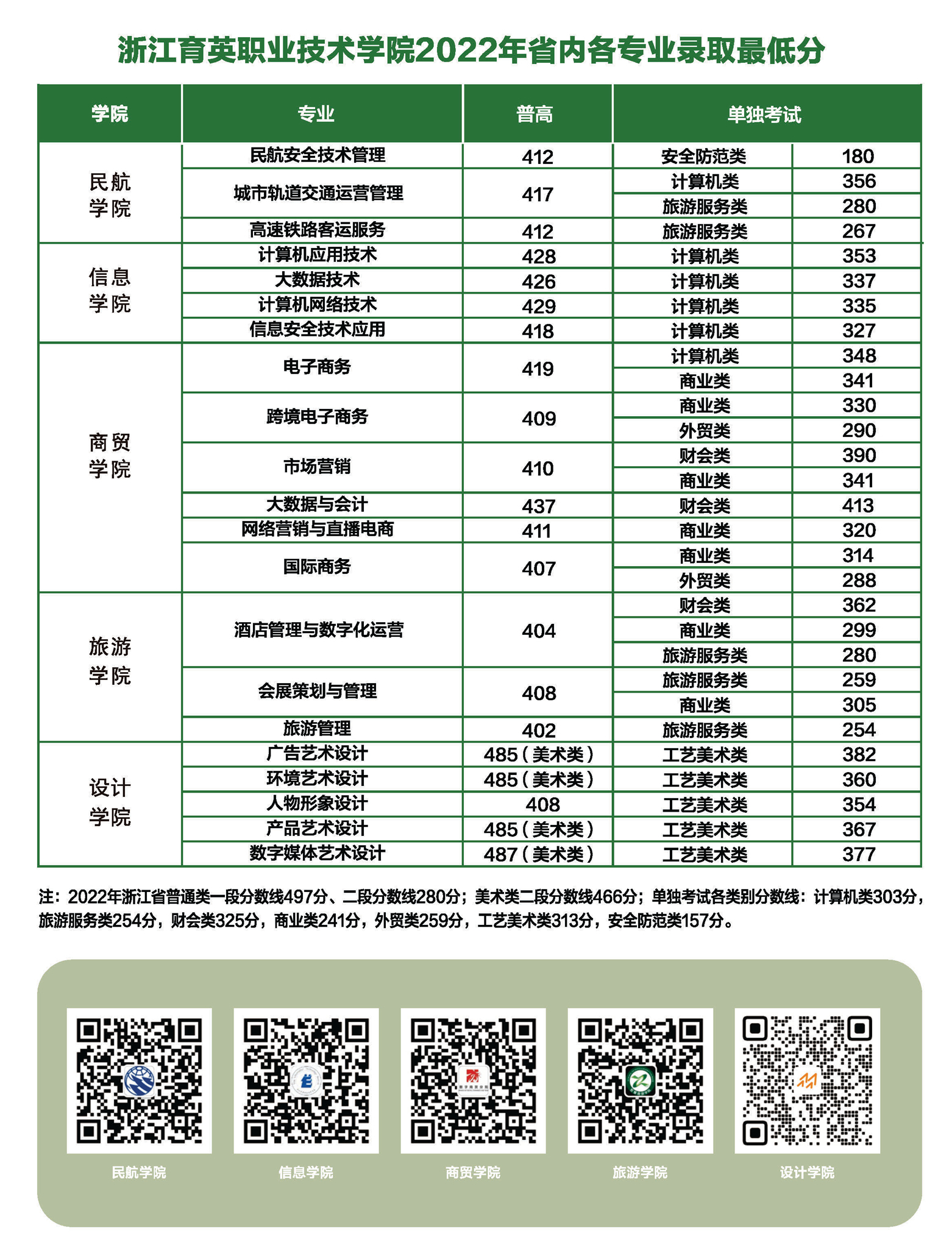 我院2022年浙江省内各专业录取最低分
