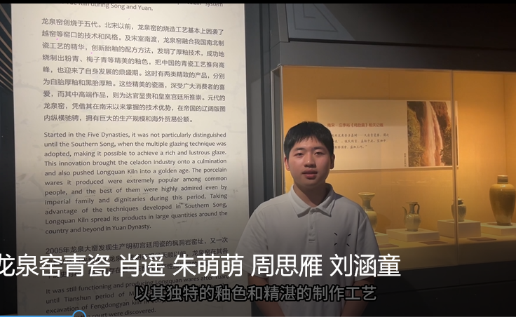 我发现以这种方式去认识这些古时的文物,能激励我更加认真地去听、去看。在课程活动中,我还当了一回讲解员,去介绍玻璃柜里的陶瓷珍品。我觉得通过文物能够将我们带回过去,去认识古代的人们是怎么样生活的,非常有意义。(22旅管A 包江宇)