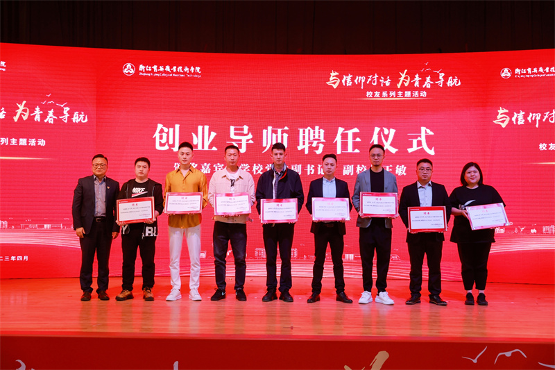 谢鑫、王敏分别为到场的优秀校友颁发校友创业导师和校友就业导师聘书。