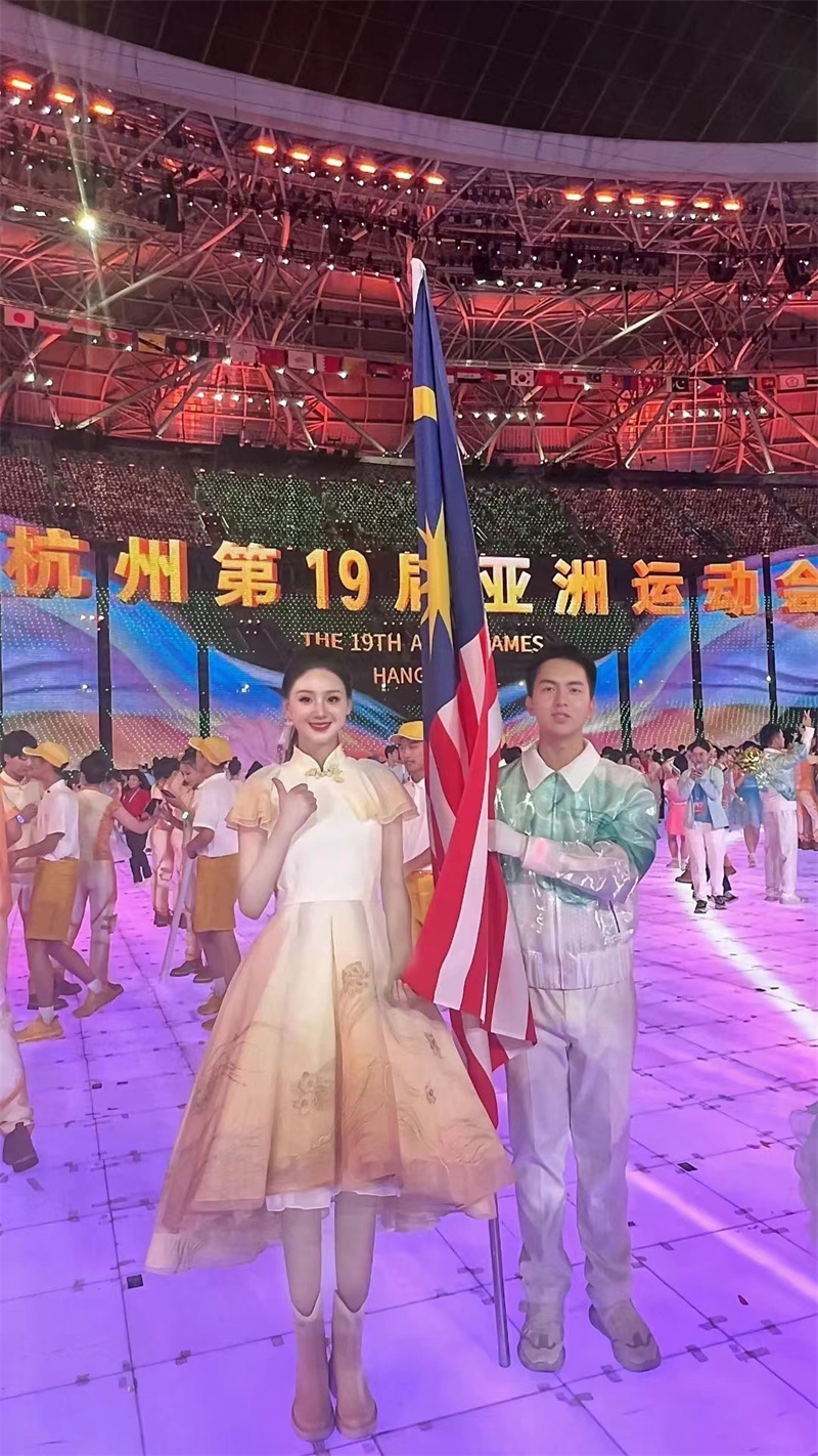 能成为杭州亚运会开幕式大舞台上的马来西亚代表团引导员,是一次难忘的体验,更是一个成长的过程。引导员意味着在世界的注视下引导运动员入场,有压力,也很激动。很庆幸自己通过了一次次严苛的筛选,得到了这个宝贵的机会。一路走来,每一步都不简单。舞台上的精彩呈现,背后是辛勤的汗水和长时间的严格训练。引导员的训练包括体能、眼神、体态、柔韧性、行走路线等。引导员的要求是穿着高跟鞋,举起牌子,保持同一个姿势,保持标准的微笑,坚持几十分钟不晃动……当开幕式的灯光打向我时,感觉特别自豪,我突破了自己、挑战了极限,心里涌起的成就感真的无法用语言来表述。