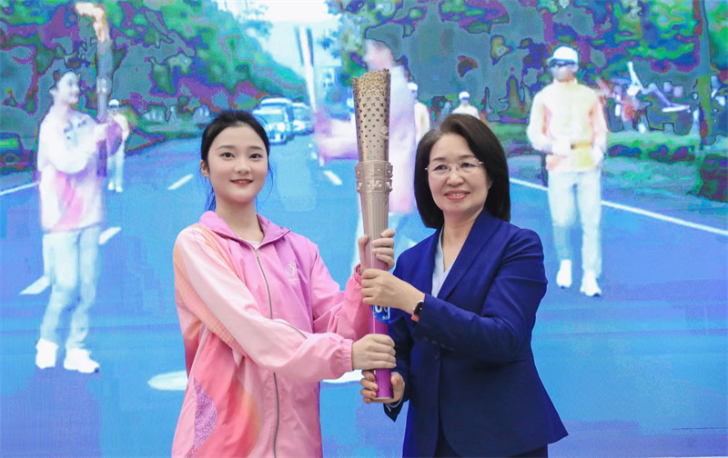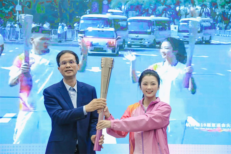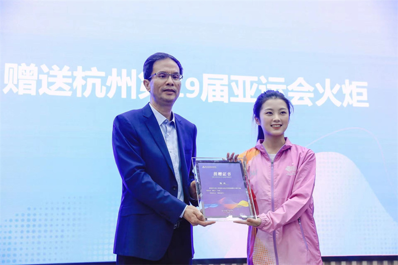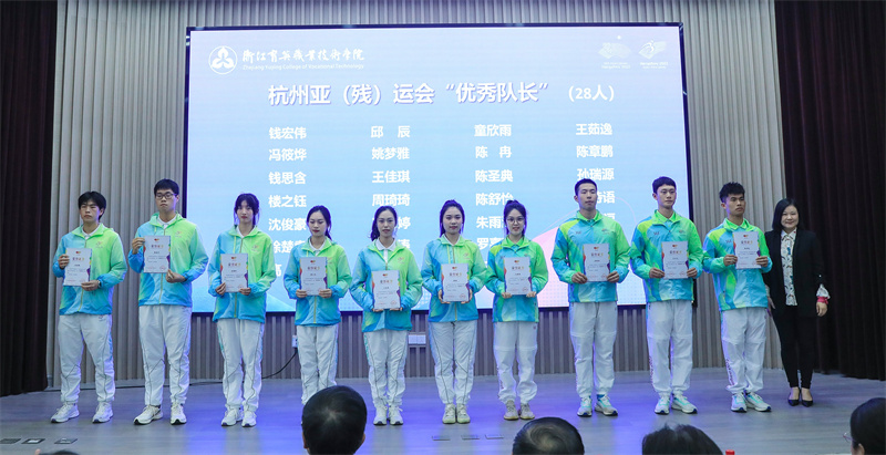 会上举行了火炬赠送仪式,杭州第4届亚残运会火炬手张圆圆向学校赠送亚残运会火炬,学校常务副校长黄爱平接收。杭州第19届亚运会火炬手陈冉向学校赠送亚运会火炬,校长丁金昌接收。