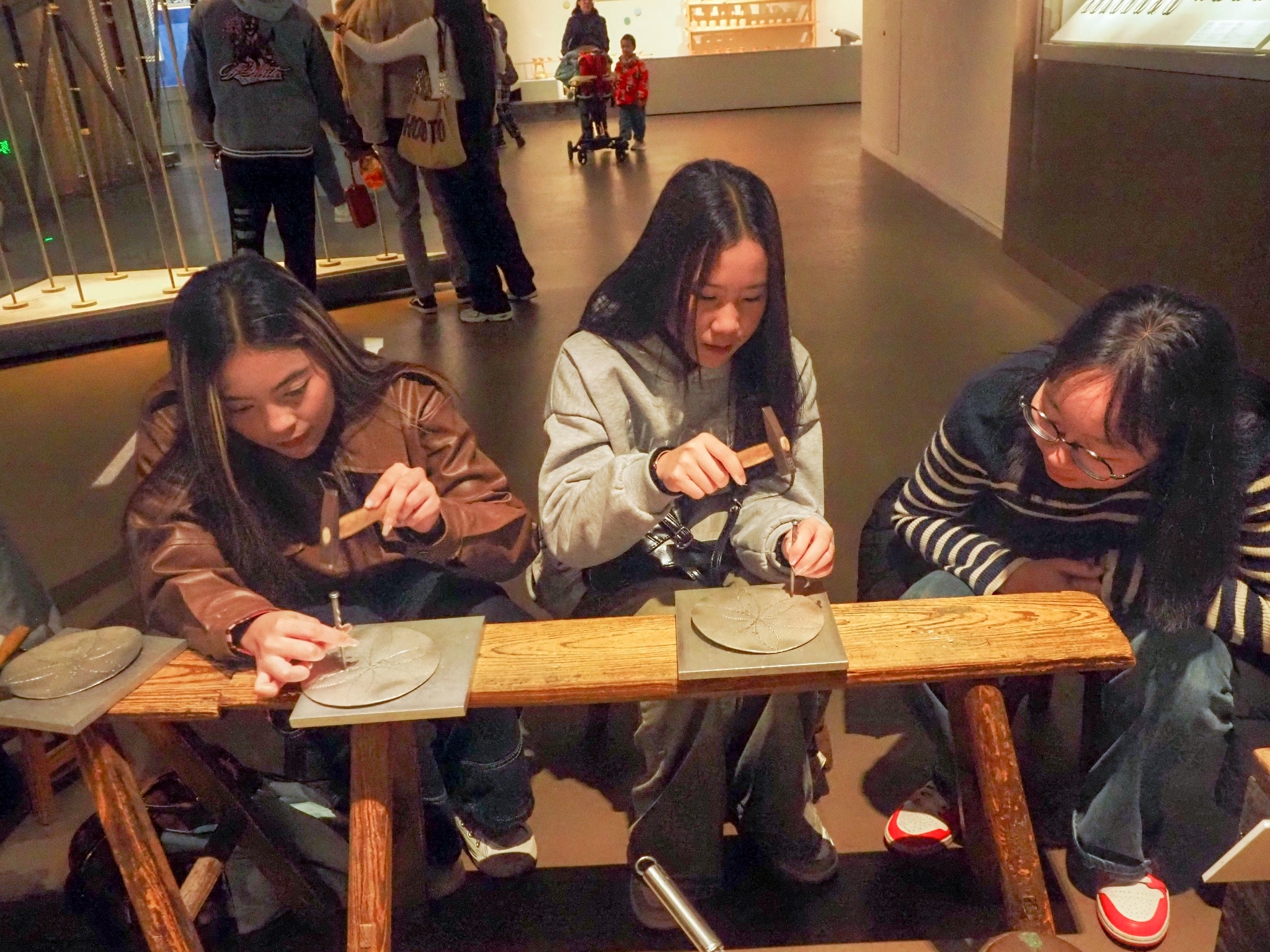 12月10日,24级老挝留学生与酒店管理专业的学生并肩,共赴浙江省非遗博物馆,探索非遗之美。