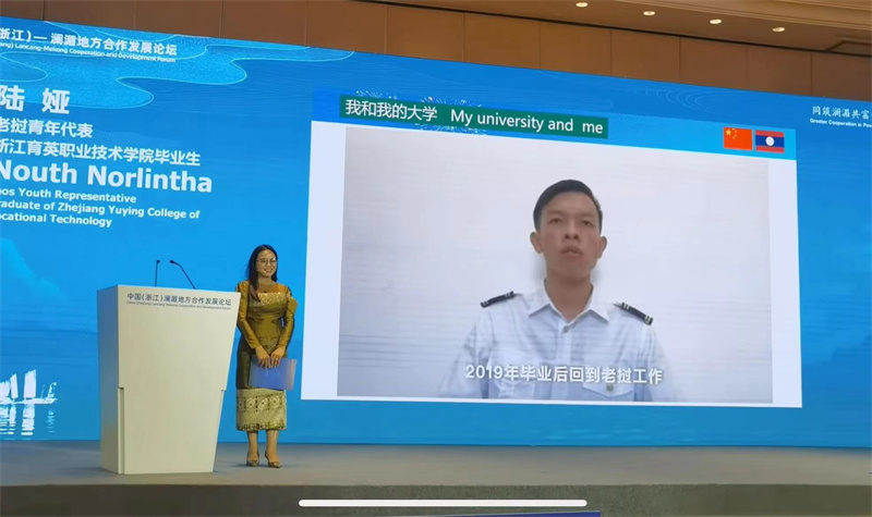 育英学院老挝毕业生在中国(浙江)澜湄地方合作发展论坛作主题分享