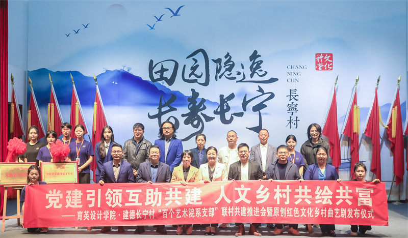 建德市人民政府副市长李俊,学校党委书记、副校长谢鑫,建德市杨村桥镇党委书记诸葛杰成,创意设计学院党总支书记、院长宋连凯共同发布原创红色文化乡村曲艺剧《你侬真好》。