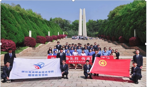 在云居山烈士陵园,举行了庄严肃穆的扫墓仪式。仪式开始,由生活部负责人施建佳担任主持,烈士纪念碑前,大家怀着无限崇敬之情肃立,奏唱国歌,向烈士们敬献了花篮并鞠躬致敬、庄重宣誓,全体参与者默哀致敬,表达了对烈士的无限敬仰和深切缅怀。首先,学院直属党支部副书记、院长助理李巧巧老师告诉大家前进的道路不可能一帆风顺,梦想的蓝图不可能一蹴而就。接着,组织部负责人祝好带领大家宣读入团誓词,让每位同学时刻牢记初心和使命,向自己的目标奋斗。随后,学生代表曹娟呼吁作为新时代新青年,肩负着继承和发扬革命烈士精神的重任。要学习烈士们坚定的信仰、无私的奉献和英勇的斗争精神,将这些精神内化于心、外化于行。最后,同学们整齐列队,依次向烈士墓献上鲜花,并绕墓一周,表达对烈士的崇敬之情。扫墓仪式结束后,组织参观了浙江烈士革命纪念馆,在馆内同学们回顾了烈士们的英勇事迹和牺牲精神。