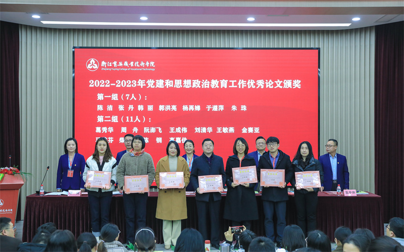 会议还通过了第十一次党建与思想政治教育研究会常务理事、会长、副会长、正副秘书长名单;表彰了上级各类获奖、学校8个“三育人”先进集体、30名“三育人”先进个人,13个优秀党日活动、12个优秀党建共建案例,18篇党建与思想政治教育工作优秀论文。