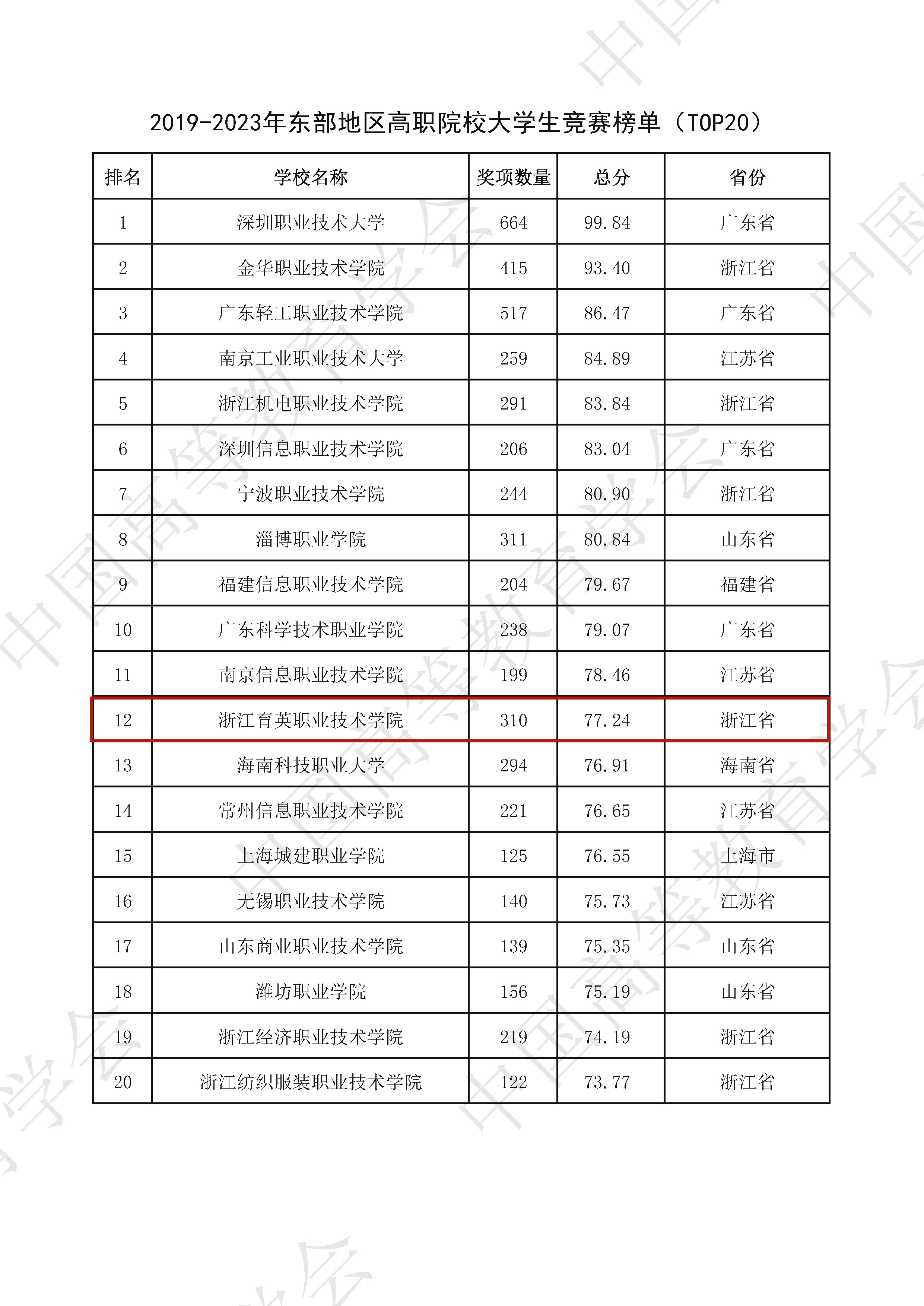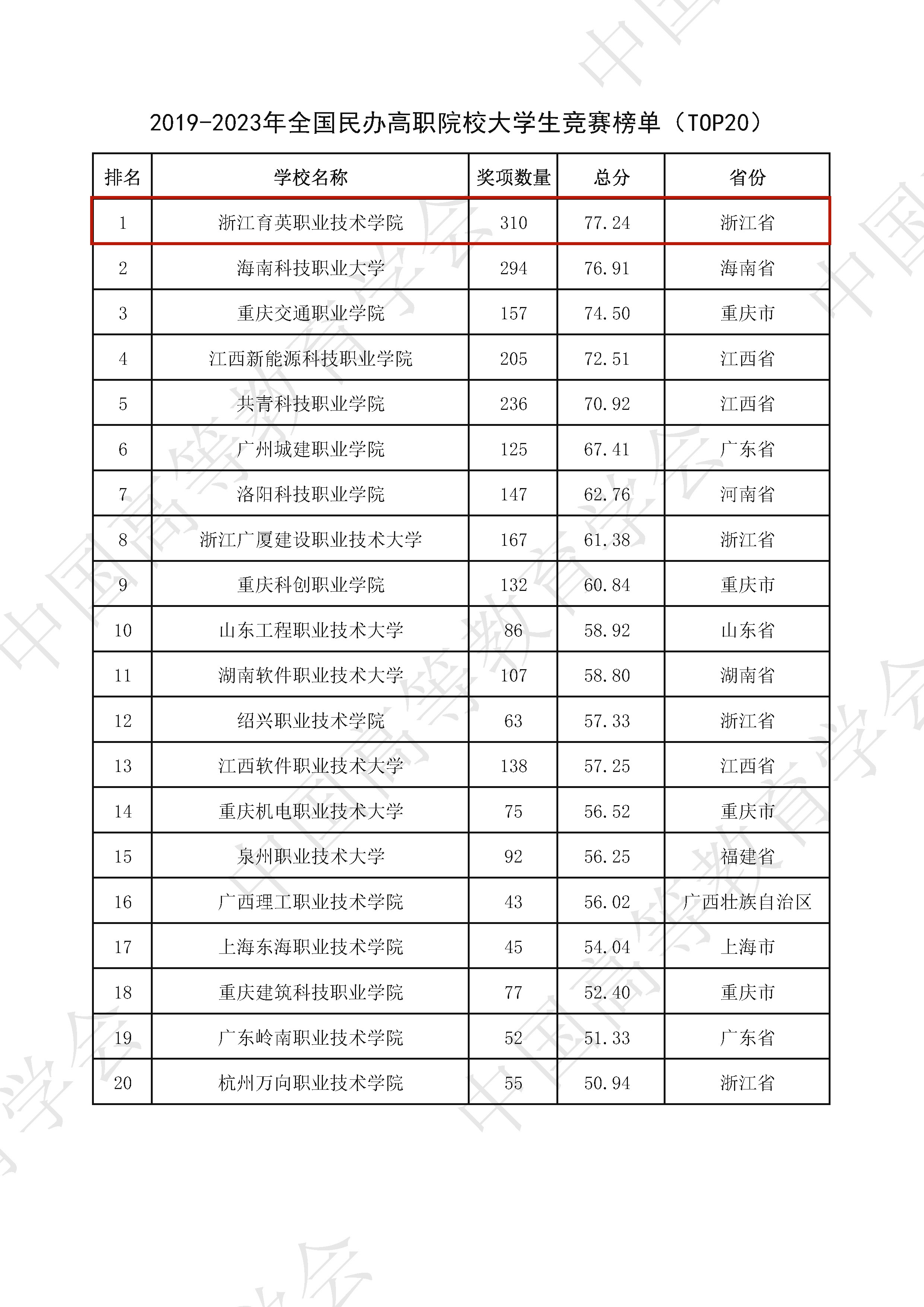 2019-2023年全国民办高职院校大学生竞赛榜单(TOP20)