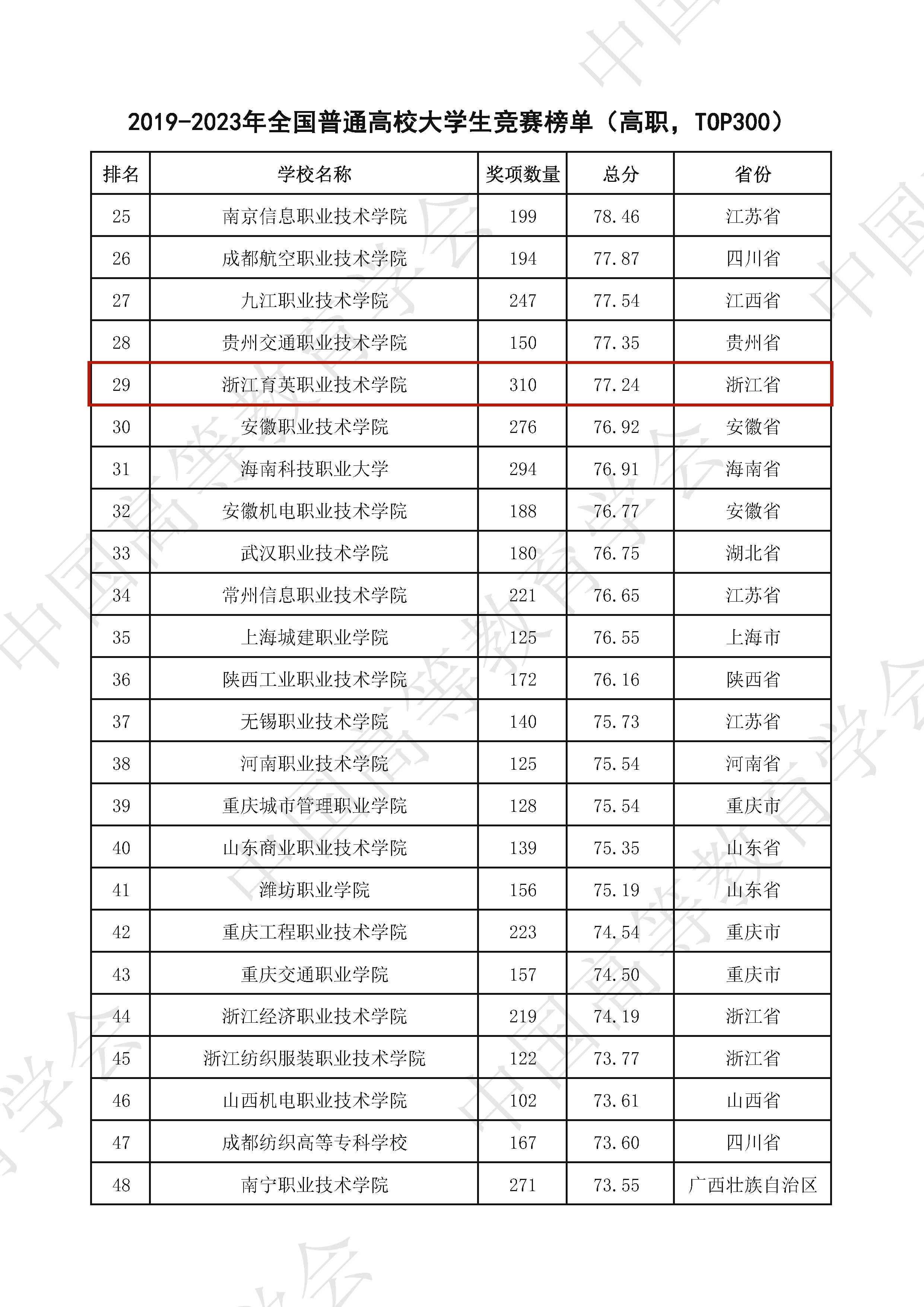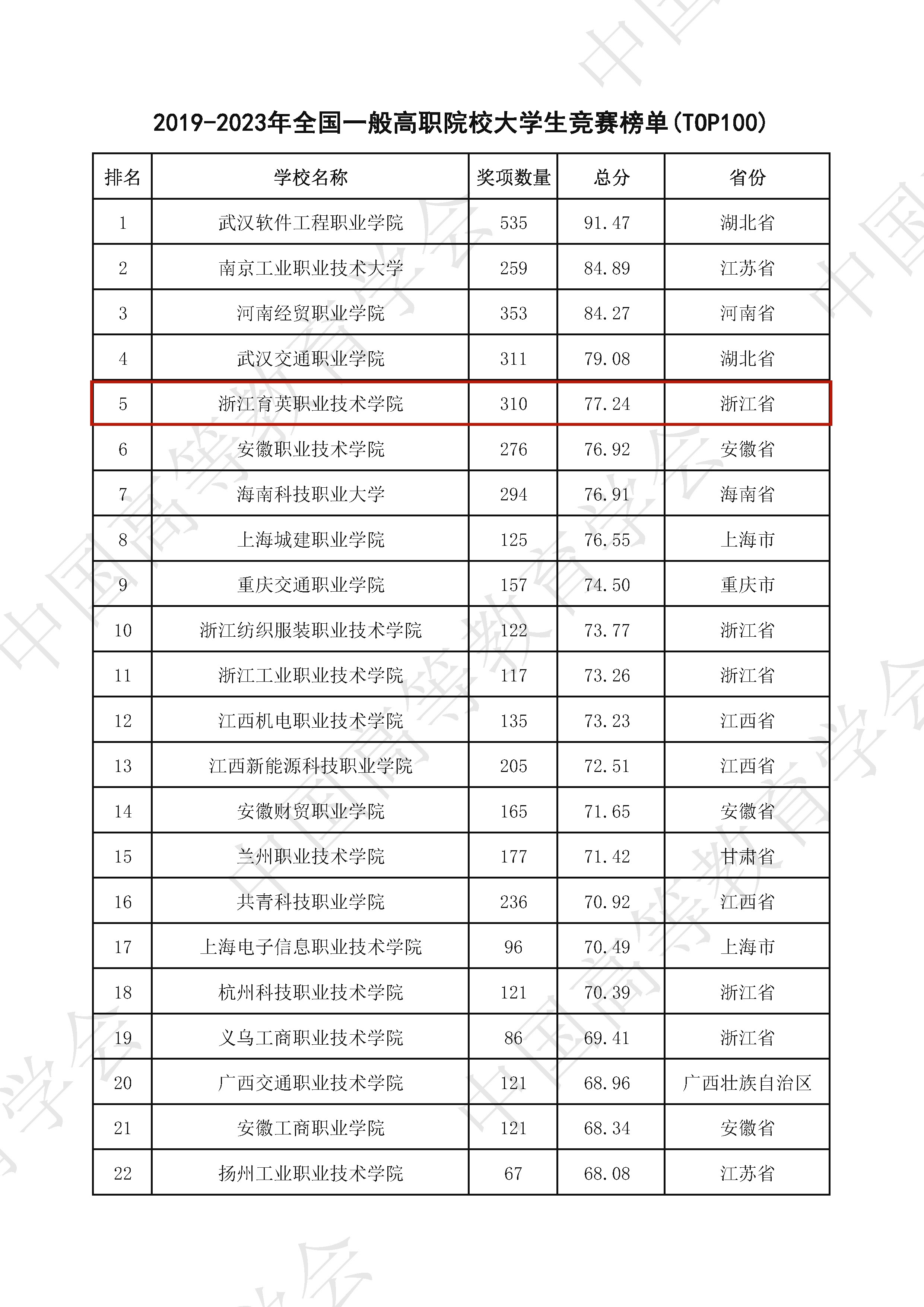 我校在2023年全国普通高校大学生竞赛榜单(高职,TOP100)