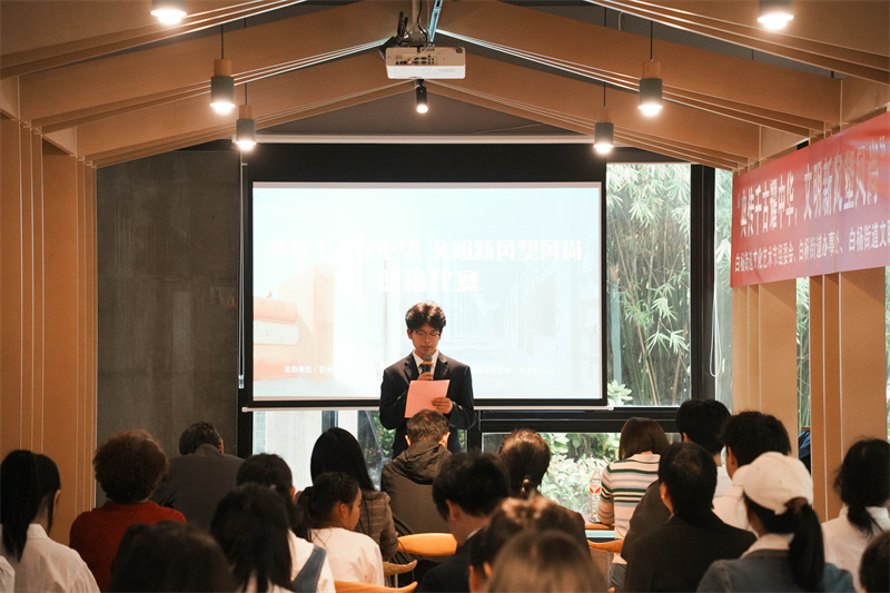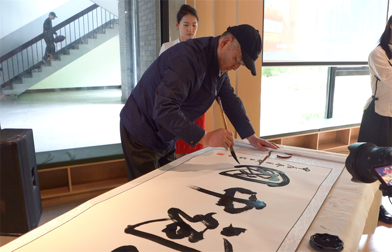 比赛现场,来自白杨街道的书法爱好者钱昌富为与会者表演了精彩的书法创作,为朗诵赛增添了书香雅致氛围。