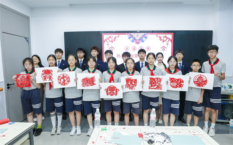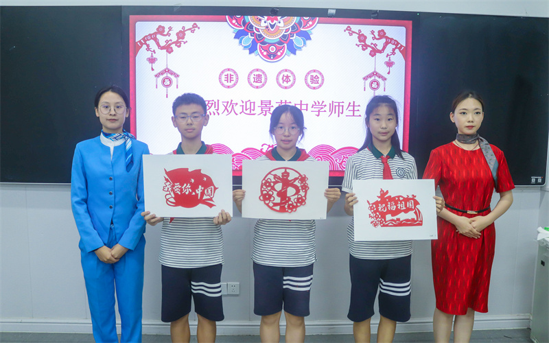 活动第二阶段是“纸短情长妙‘剪’生花,传承剪纸践行爱国”剪纸活动。民航交通学院教师楼海燕和马克思主义学院思政课教师为中学生们传授了国家级非物质文化遗产剪纸技艺。他们以“中国梦,爱我中华”为主题,将中华传统文化和爱国主义融入活动中。一幅幅精心制作的剪纸作品蕴含着深厚的文化意义,表达了同学们对中华优秀传统文化的热爱和对祖国的深情。