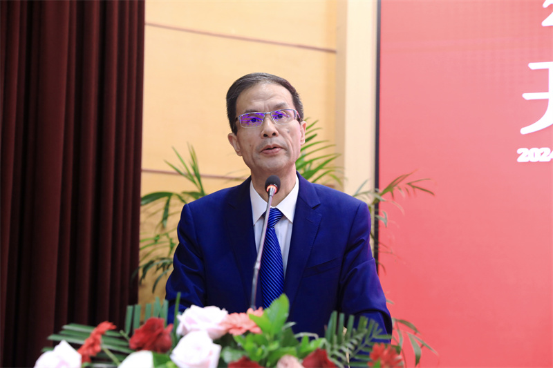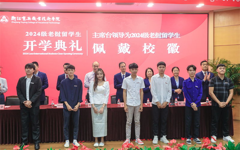 丁金昌致辞,他代表全校师生对2024级老挝留学生表示热烈欢迎,并回顾了学校与老挝教育与体育部职业技术教育司的合作历程、“中老育英丝路学院”建设以及老挝学历留学生培养成果。他对老挝留学生提出希望和要求。希望同学们认真学习中国文化,努力提高专业素养,积极参加各类活动,充分利用学校优质资源,刻苦学习,掌握过硬本领,争做“知华、友华、爱华”的优秀留学生,成为中老文化交流使者,让中老友谊之桥更加坚实稳固。希望同学们在挑战中磨砺意志,在奋斗中成就自我,以顽强拼搏的精神书写属于自己的精彩故事,勇敢地展示自我风采,在育英留下无悔的青春印记。
