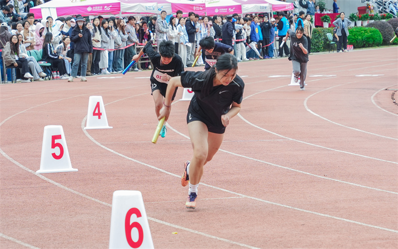 徐晓斌致闭幕词。他说,本届运动会旨在通过体育竞赛,强化同学们的体质;弘扬不怕困难、拼搏进取、奋发向上的精神;增强集体荣誉感。这不仅是对同学们身体素质、运动技能和精神风貌的一次全面检阅,更是增强学校凝聚力、丰富校园生活的重要举措。比赛项目丰富多样,广大师生踊跃参与,整个比赛过程紧张有序、热烈精彩,纪律严明,赛出了风格、赛出了友谊、赛出了水平。运动员们全力以赴,你追我赶,奋勇向前,比技能、比团结、比友谊、比意志;啦啦队员们热情地为运动员呐喊助威,做好服务工作,充分展现了良好的道德风尚;全体裁判员坚守原则,认真负责,以身作则;广大教师积极参与,主动服务,团结协作,为运动会的圆满成功提供了有力保障。希望全校师生积极响应国家号召,传承亚运精神,每天坚持体育锻炼一小时,为 “全民健身计划”、为 “健康中国”、为 “体育强国” 贡献力量。