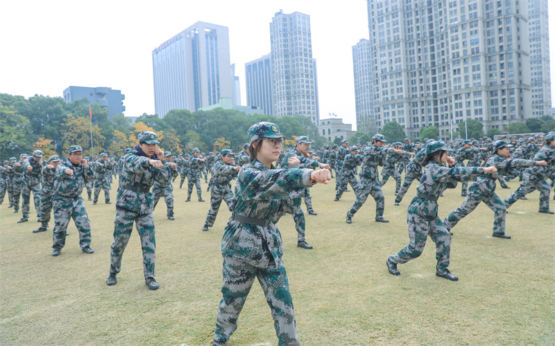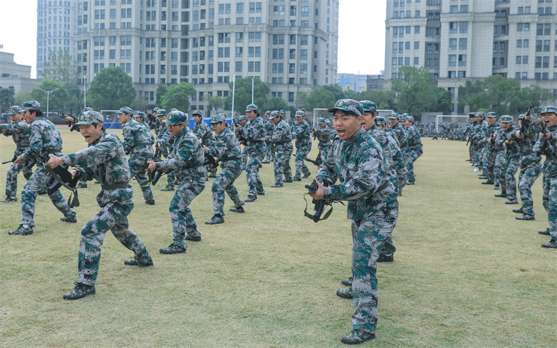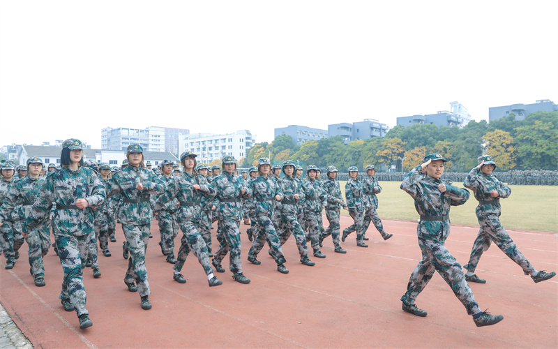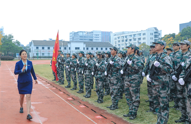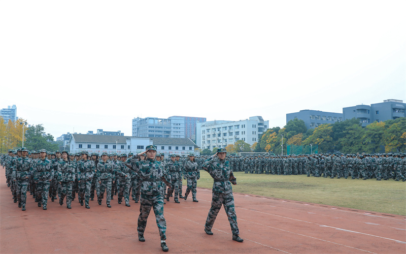 王敏作军训总结。他向全体教官表示感谢和敬意;向全体新生致以亲切问候;向表现突出的优秀集体和先进个人表示祝贺。他说,在承训教官的悉心指导下,同学们刻苦学习,严谨训练,出色完成了军训的每项任务。军训让大家增强了国防观念、提升了国防素质,强健了体魄、磨练了意志,培养了团队协作和集体主义精神。希望同学们以军训为契机,继续发扬军训中展现出的优秀品质,在未来的岁月里用“三个坚持”继续精彩的大学生活。一是坚持理想追求,以坚定的信念和强烈的责任感,肩负起历史使命、时代担当、个人价值。二是坚持传承创新,铭记“厚德载物、自强不息”的校训精神,传承学校红色基因,培养“责任担当、大爱奉献、顽强拼搏”三种精神。三是坚持自我磨砺,从社会实践中感知使命感、责任感、成就感,激发学习的主动性、创造性和实效性。