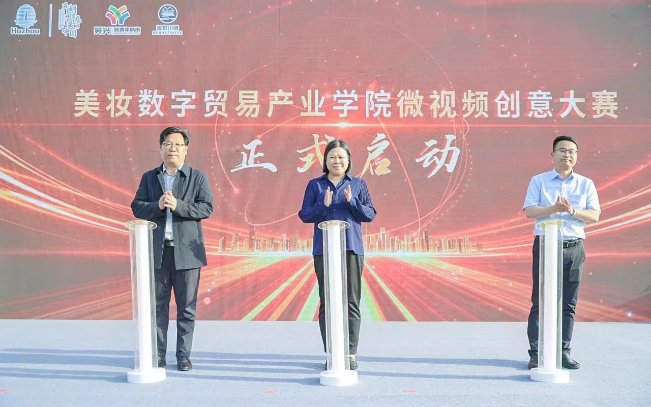 4月25日,湖州美妆小镇第七届玫瑰文化节在湖州市吴兴区埭溪镇四季玫瑰庄园开幕,由美妆小镇管委会主办、我校数智商贸学院承办的美妆数字贸易产业学院微视频创意大赛同时启动。数智商贸学院党总支副书记、副院长姜蕾受邀出席活动,并上台启动微视频创意大赛。