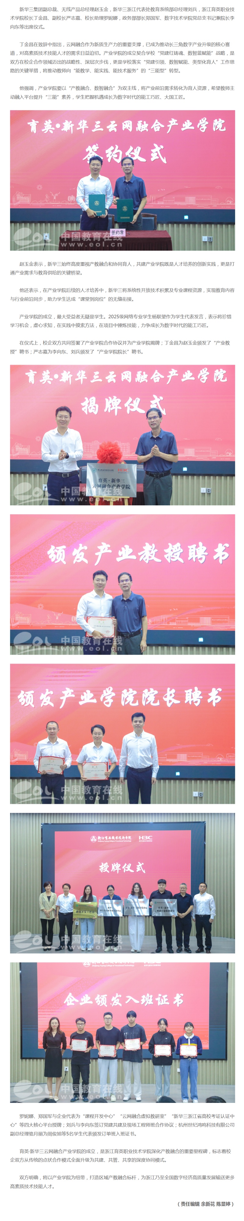 双方明确,将以产业学院为纽带,打造区域产教融合标杆,为浙江乃至全国数字经济高质量发展输送更多高素质技术技能人才。