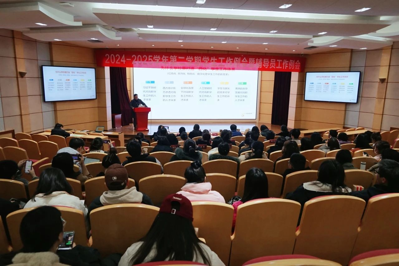 2月19日下午,新学期学生工作例会暨辅导员工作例会在学术报告厅召开。党委副书记、副校长王敏,党委委员、学务部部长邬佳,学务部副部长王亦飞,各学院党总支副书记、学工办主任、全体辅导员、学务部全体人员参加会议。