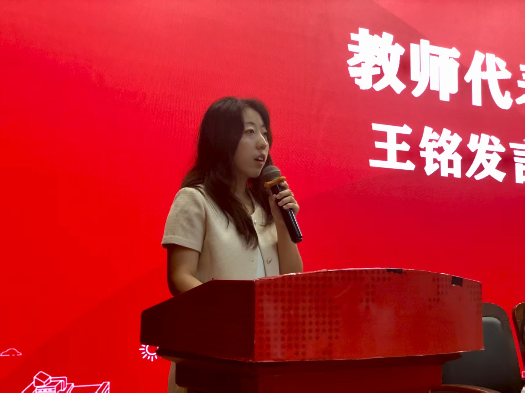 教师代表王铭首先代表学院全体教师对全体新同学表示热烈的欢迎,她表示选择高职单独招生,对同学们而言,不是一条 “捷径”,而是一次精准的 “赛道选择”。备考之路注定不会轻松,会有困惑,会有焦虑,甚至会有偶尔想要放弃的念头。她鼓励大家要有坚定的信心和向前的勇气,来战胜所有困难。同时,她结合多年的备考指导经验,向同学们分享几个实用的学习方法,希望能帮助同学们少走弯路,高效备考:第一,制定科学的学习计划,拒绝 “盲目跟风”;第二,重视 “错题本”,让错误成为进步的阶梯;第三,主动沟通,善用身边的 “学习资源”。希望同学们拿出 “咬定青山不放松” 的韧劲,付出 “滴水穿石” 的努力,在明年的单招考试中交出一份满意的答卷,顺利走进自己心仪的大学校园!