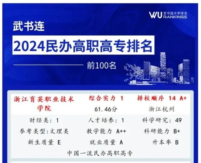 《武书连中国高职高专评价》2024排行榜发布,学校位列民办高职高专组综合实力全国第1名,财经类全国第1名,人才培养全国第1名,入选中国一流民办高职高专。