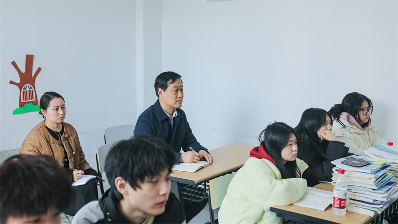 丁金昌全面了解门岗值班、教师上课、学生出勤、手机入袋、抬头率等情况。并对教师课堂教学提出指导意见。