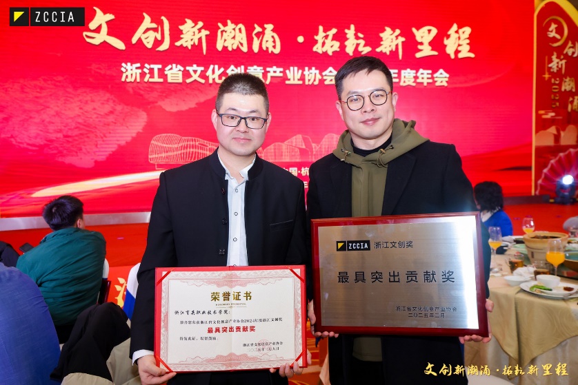 近日,浙江省文化创意产业协会二届二次理事会暨第五次会员代表大会在杭州召开。会上评选表彰了2024年度浙江省文化创意产业优秀单位,我校获浙江文创奖——最具突出贡献奖。创意设计学院院长宋连凯、综合办主任周亮到现场参会并领奖。会上,我校创意设计学院与杭州周墨文化创意有限公司签约创新设计实践基地项目。