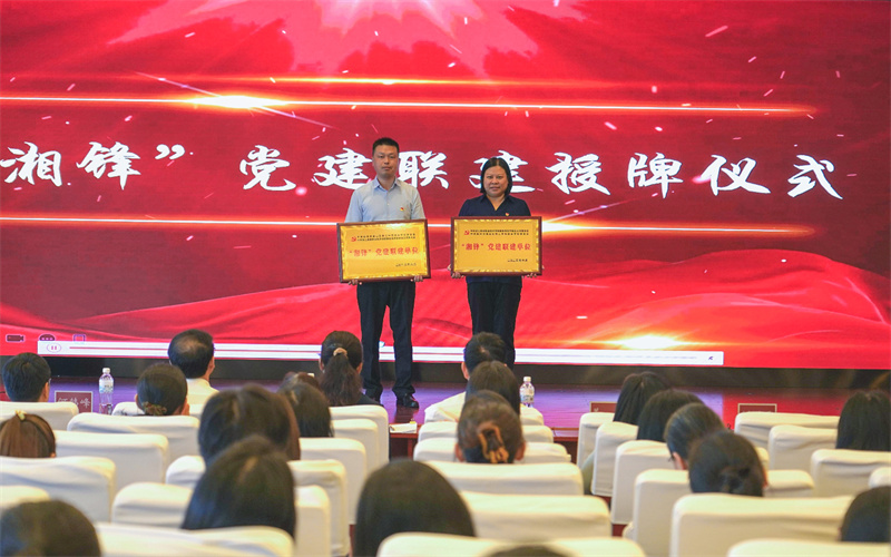 姜蕾与邵益锋为“湘锋”党建联建单位授牌。