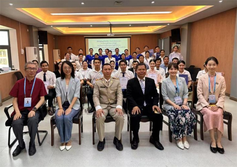 结业典礼现场,学员们身着中老传统服饰进行礼仪展示,生动演绎两国文化魅力。全体学员共同回顾了五天培训纪实视频,展示了专业规范的培训成果,体现了职业素养的提升。