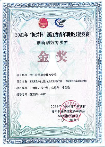 环艺专业学生获“振兴杯”浙江青年职业技能竞赛金奖